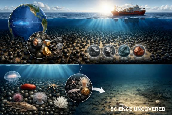 Up to a third of deep-sea life in the region depends on those nodules. The hard surfaces provide rare real estate in an otherwise soft sediment environment. Mining would remove the nodules and destroy the habitat. The proposed method involves a large seafloor vehicle that vacuums up nodules and sends them to a surface vessel through a vertical pipe, with displaced sediment and crushed organisms pumped back into the water column as a plume. A 1978 dredging test left visible seabed scars showing little to no ecological recovery after five decades.